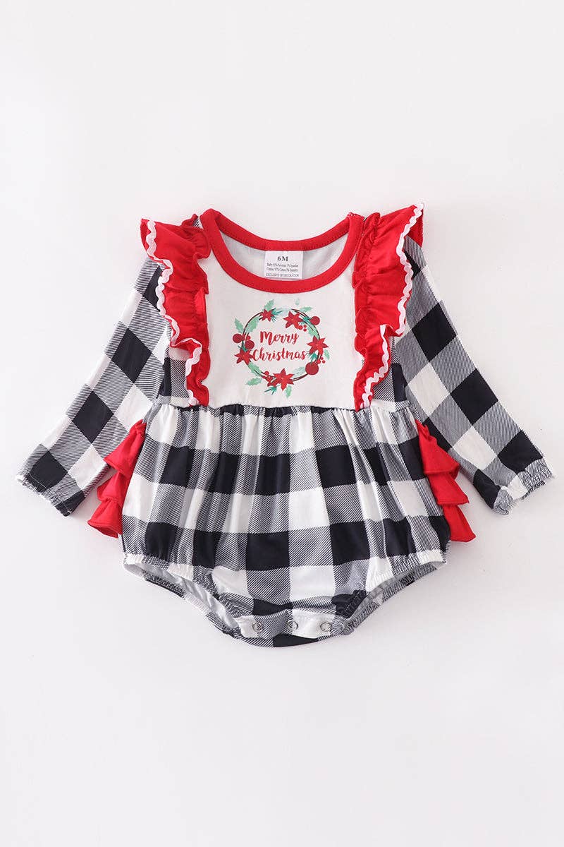 Merry christmas ruffle plaid baby romper