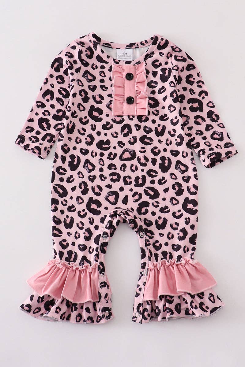 Pink leopard ruffle baby romper 95% Polyester 5%Spandex RPG651122104